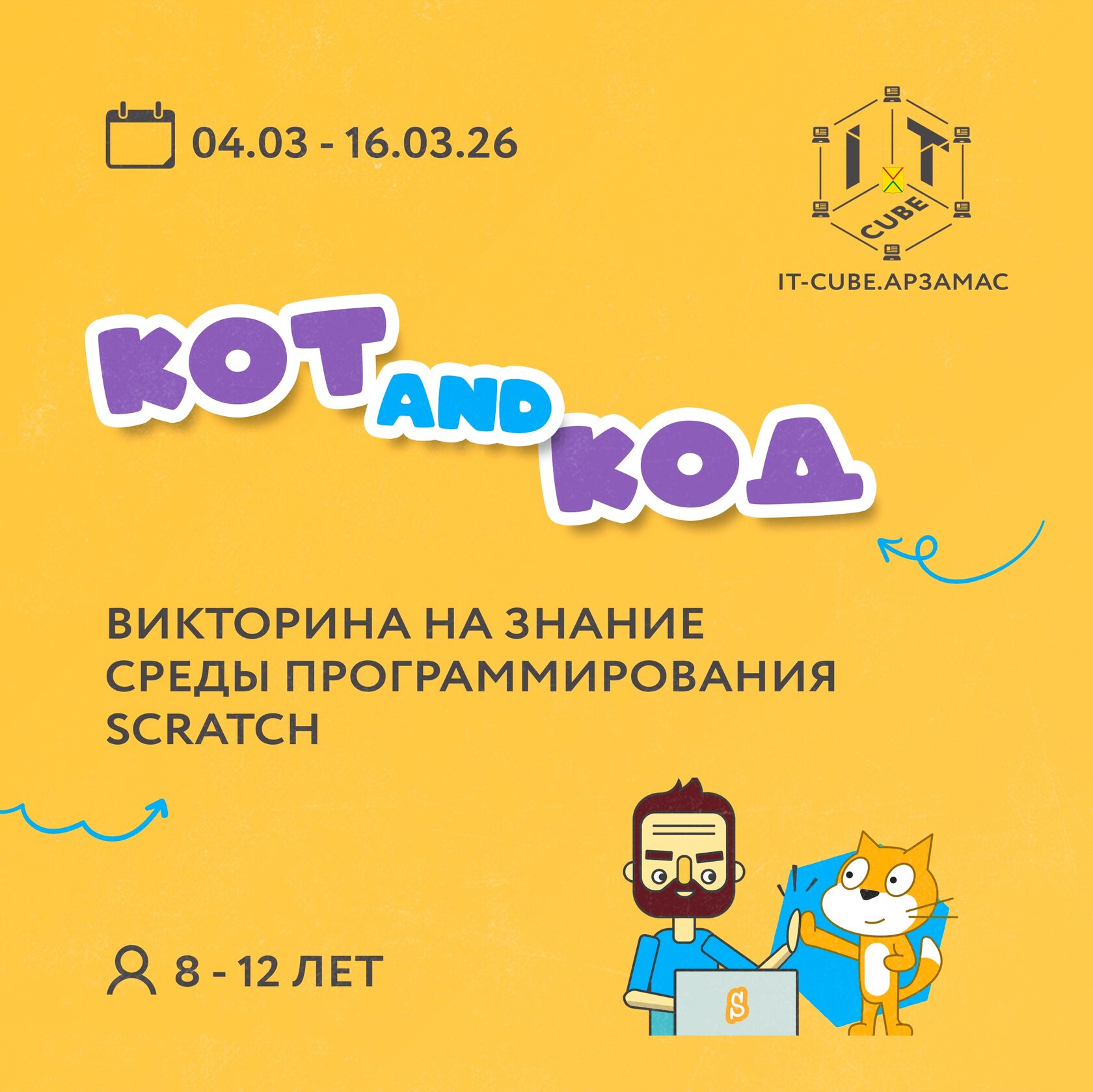 Предлагаем принять участие в ежегодной дистанционной Викторине на знание среды программирования Scratch «Кот and Код»